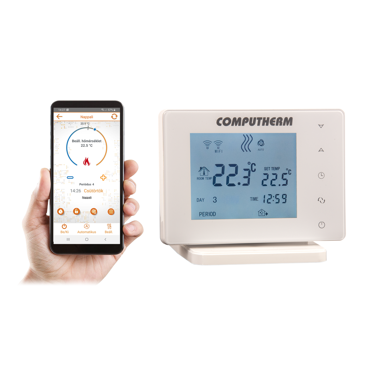 Wi-Fi termostat COMPUTHERM E800RF (TX) je bezdrôtové spínacie zariadenie, ktoré možno ovládať aj prostredníctvom internetu zo smartfónu alebo tabletu a ktoré sa odporúča predovšetkým na ovládanie vykurovacích a chladiacich systémov.