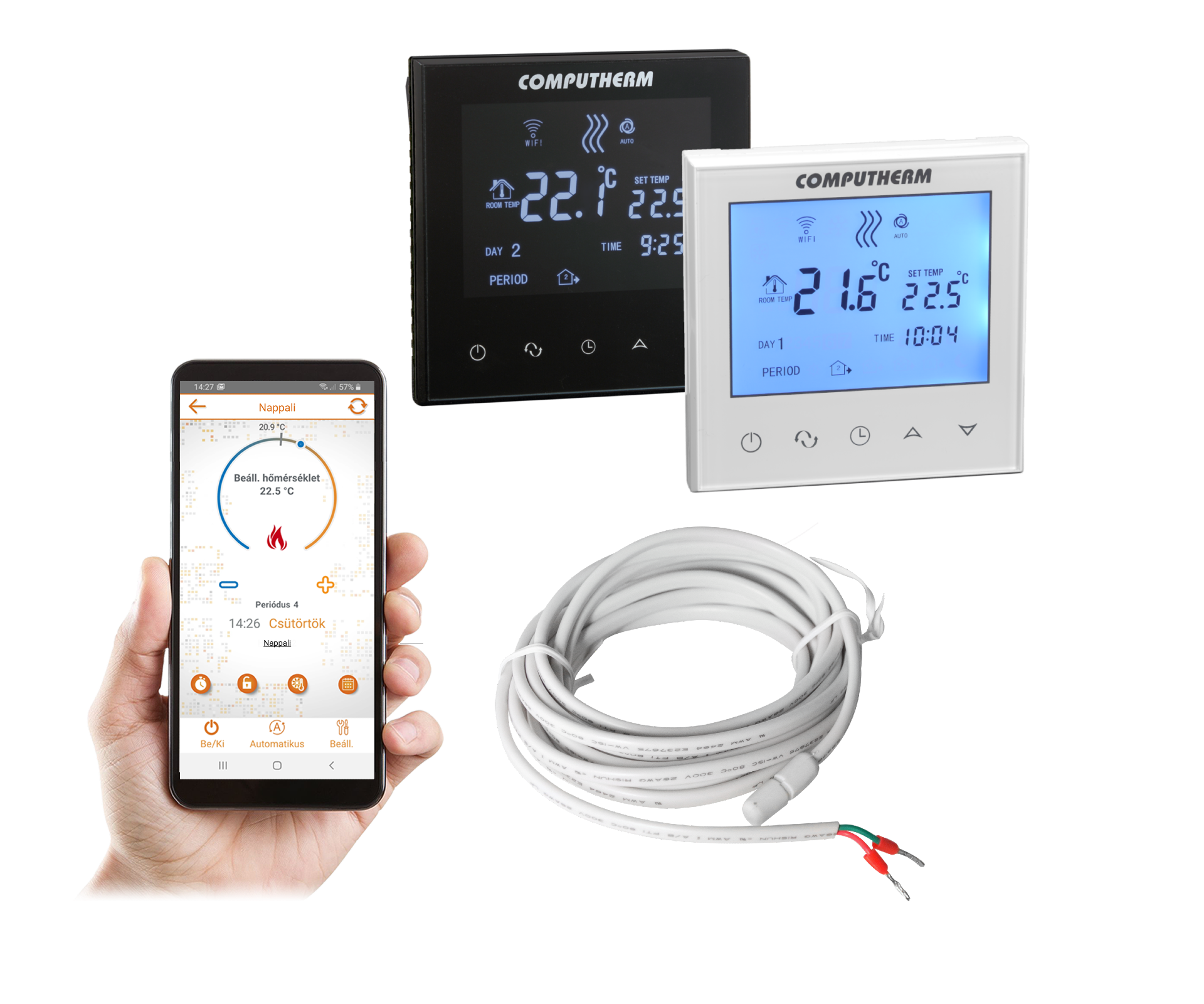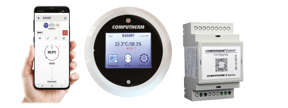 Programovateľné rádiofrekvenčné izbové termostaty s dotykovými tlačidlami a dotykovým displejom. Termostat komunikuje medzi vysielačom (termostatom) a prijímačom prostredníctvom rádiofrekvenčného signálu, takže nie je potrebná žiadna kabeláž. Pre každý deň v týždni je možné vytvoriť samostatný teplotný program (COMPUTHERM B400RF), meniť nastavenú teplotu a zvoliť citlivosť spínania.
